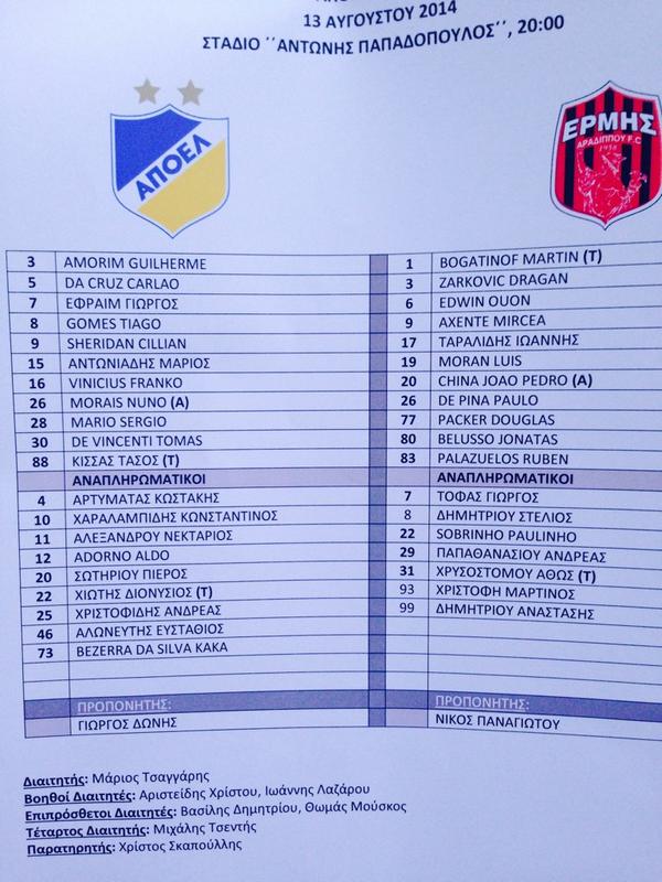 - 19:00 Η 11άδα του ΑΠΟΕΛ: