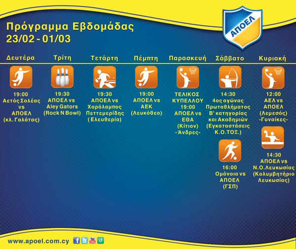 - ΟΛΕΣ οι μέρες μας, είναι γεμάτες ΑΠΟΕΛ! - Ο ΑΠΟΕΛΛΙΣΤΑΣ δεν πλήττει ποτέ! Το πρόγραμμα γι αυτή την εβδομάδα.